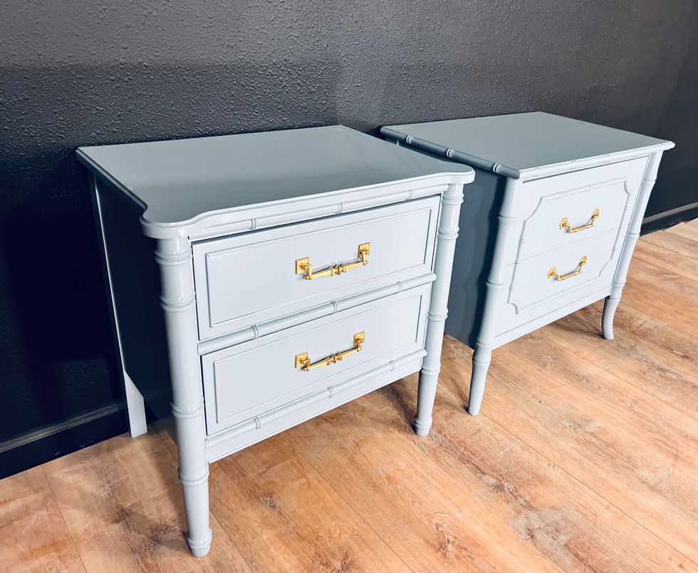 These two vintage bamboo nightstands were finished in a dreamy blue gray and paired together for that collected, curated look we love. Different, but still speaking the same language.